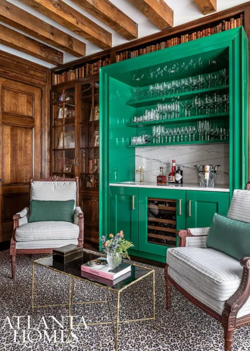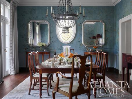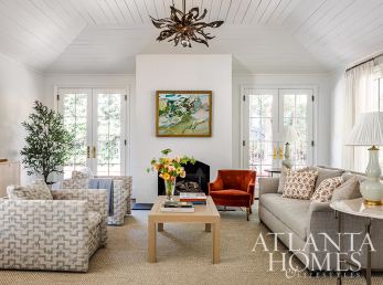 With her children grown, a stylish Atlanta resident downsized into a charming English Tudor-style cottage in Tuxedo Park originally designed by Summerour Architects. Envisioning a home that combines sophistication and comfort, she commissioned architect Amanda Orr of Amanda Orr Architects and interior designer Whitney Ray of Wyeth Ray Interiors to redesign the interior. “I call her the queen of entertaining,” says Ray. “We created a space that was intimate and comfortable for her on a day-to-day basis and grand enough for the large parties she hosts.”